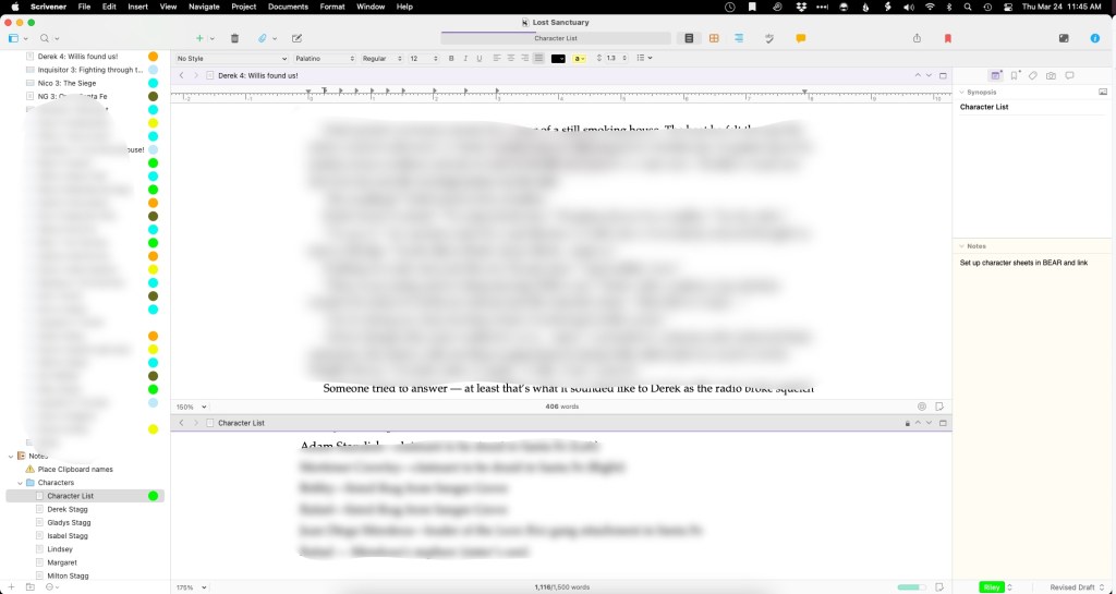 Word stifles me — and many thousands of other writers. It doesn’t have the ability to adjust and switch on the fly as much as my mind does when I’m writing a story. For that, I rely on a writing platform known as Scrivener. Some people will recognize me waxing poetic about this beautiful software from my previous blogs. For all you new people, pull up a chair, pop open a beverage of your choice, and sit back.